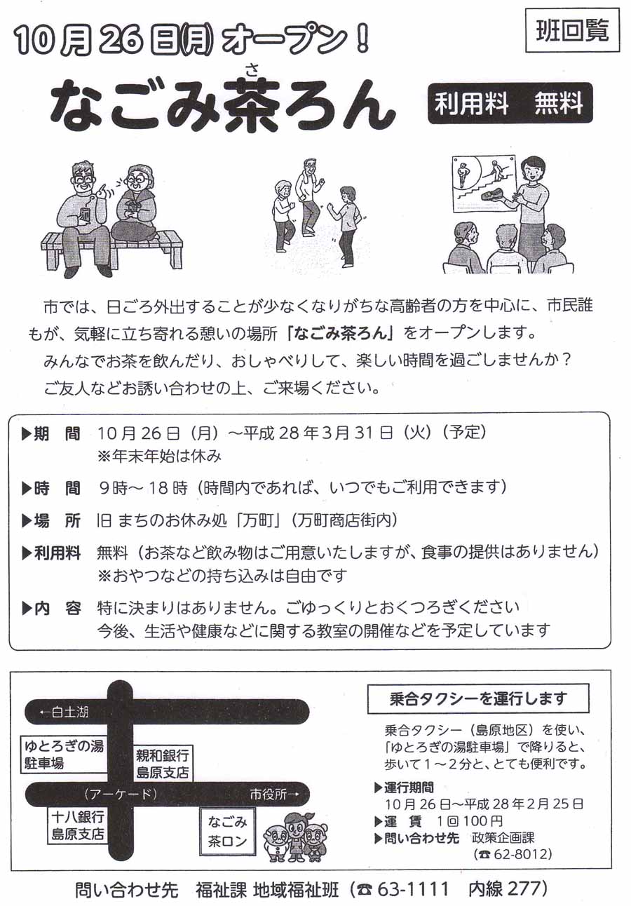 島原アーケードに、10/26(月)「なごみ茶ろん」OPEN!
