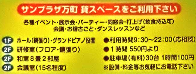 | ふれあいホール:サンプラザ万町(よろずまち) | |