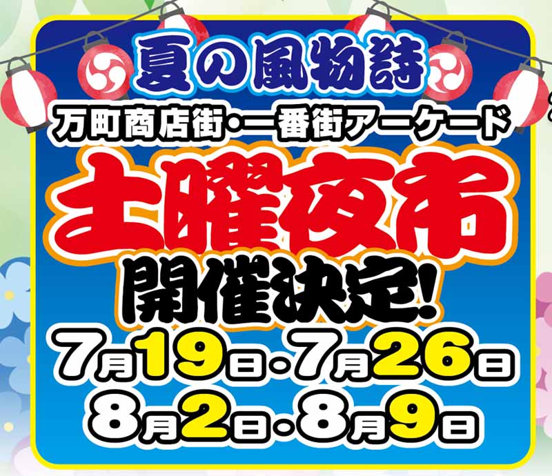 | 土曜夜市 7/19(土)26(土)8/2(土)9(土) ![]() ![]() ↑クリック↑ |