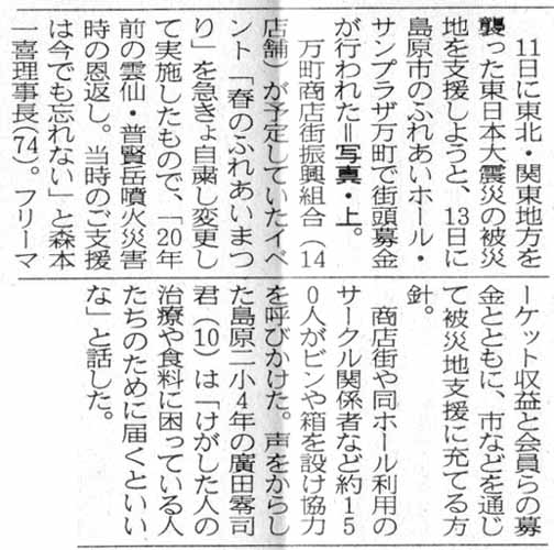 2011年3月15日島原新聞